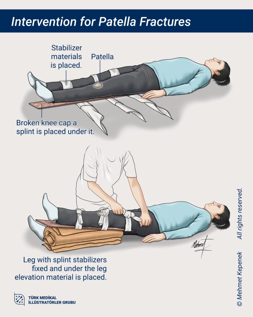 HomePortfolioMedical IllustrationFirst aid illustration series: Intervention for patella fractures