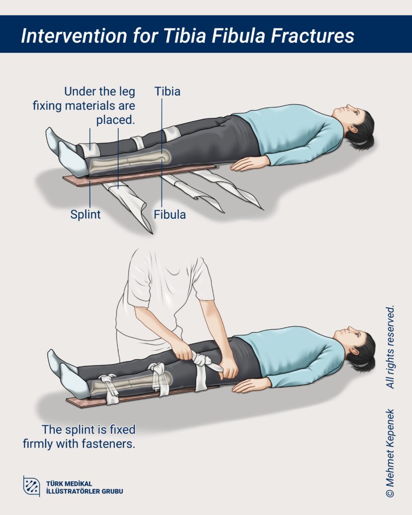 HomePortfolioMedical IllustrationFirst aid illustration series: Intervention for tibia/fibula fractures